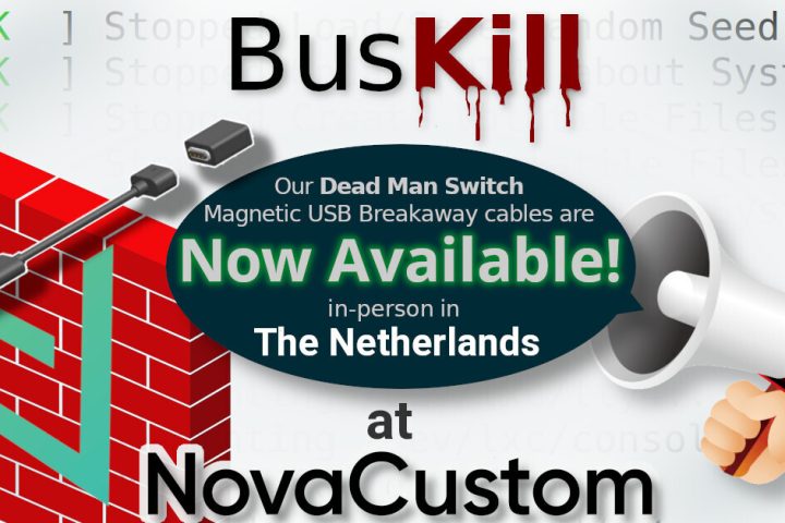 BusKill is a laptop kill-cord. It’s a USB cable with a magnetic breakaway that you attach to your body and connect to your computer.
